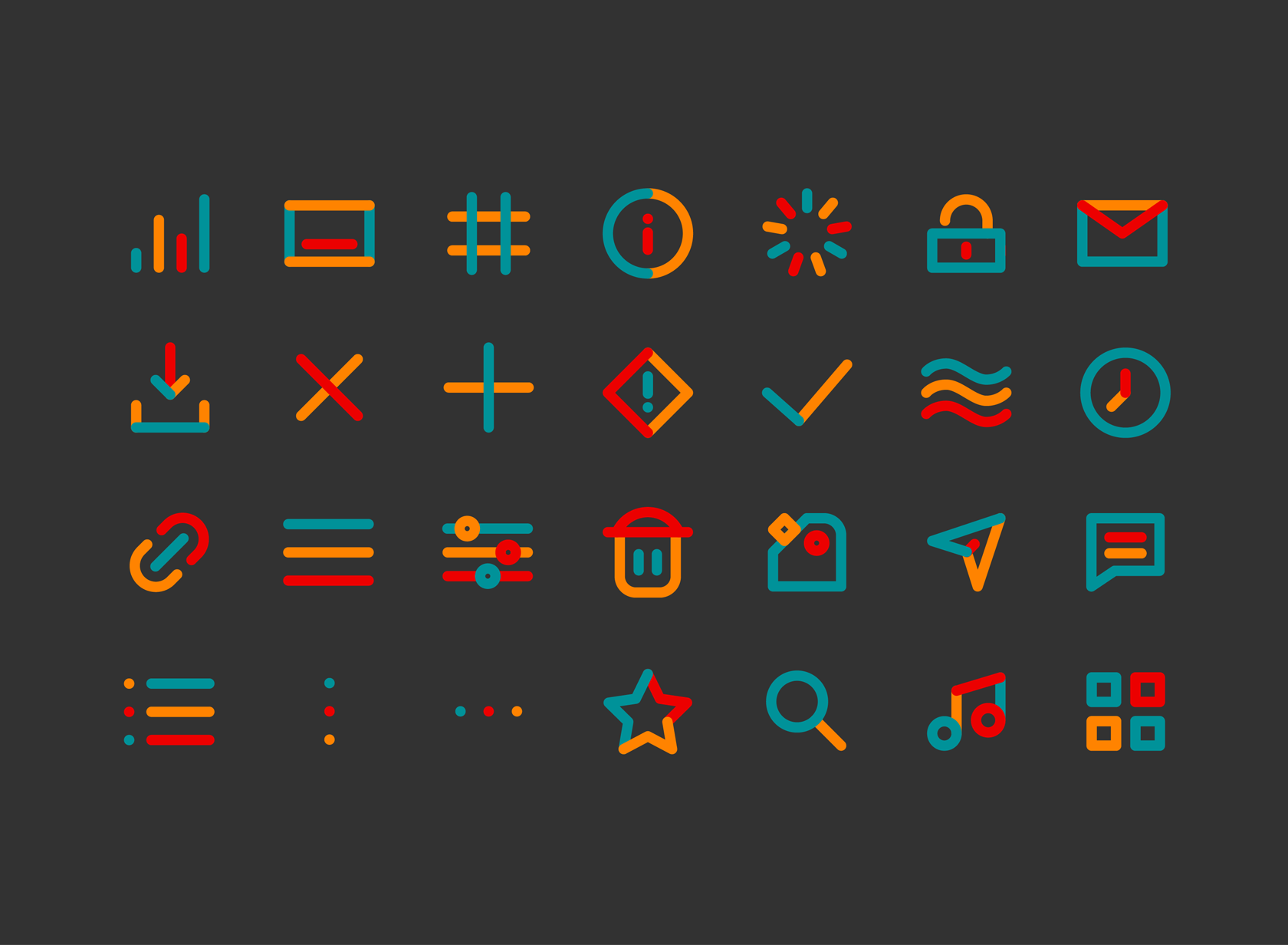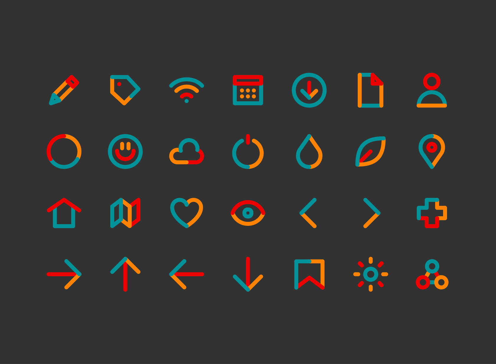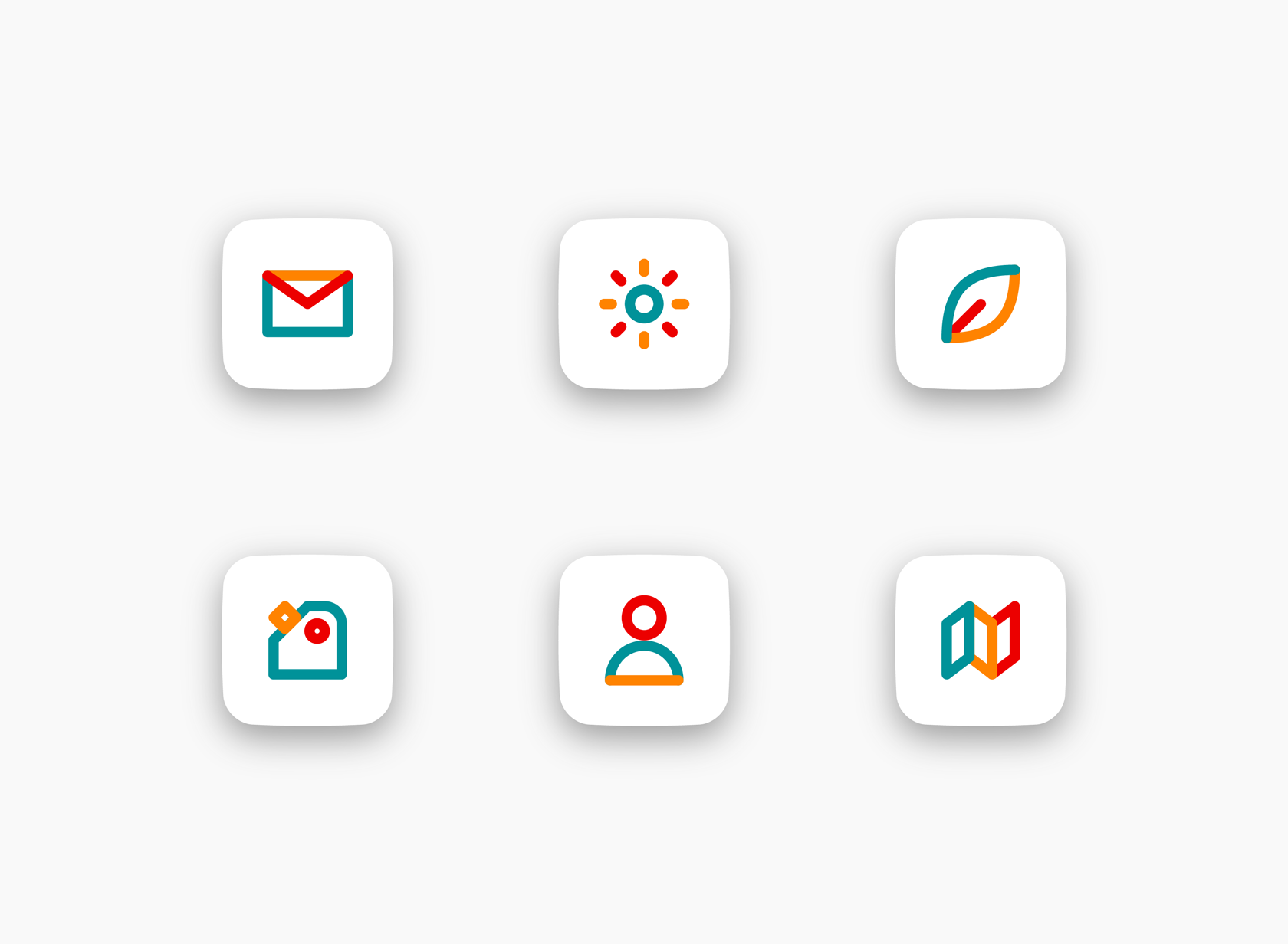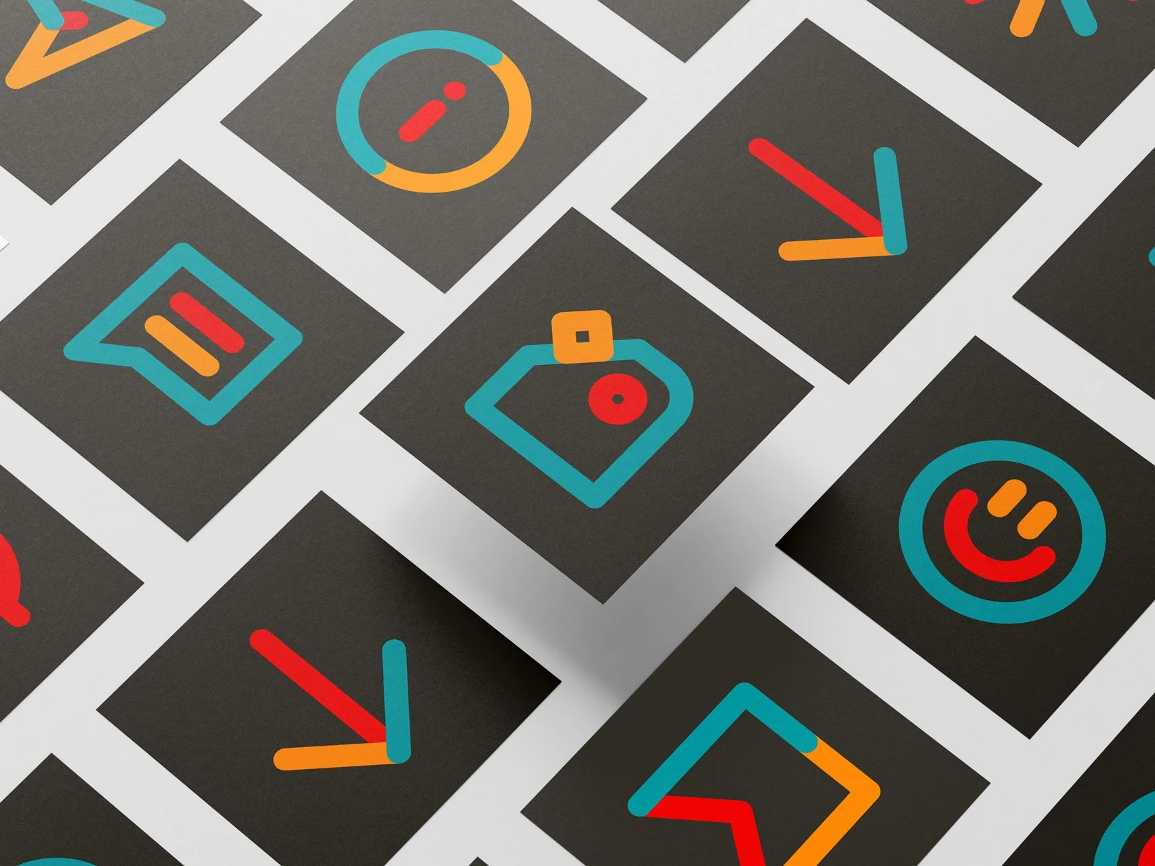 Die Icons greifen die markanten Farben Petrol, Orange und Rot auf und basieren auf einfachen, offenen Formen. Durch ihre reduzierte Gestaltung bleiben sie auch in kleinen Anwendungen – etwa auf Visitenkarten oder Websites – gut lesbar und wiedererkennbar. Gleichzeitig verleiht die kräftige Farbwelt den Icons eine starke Präsenz, die den energiegeladenen Charakter von Volenergy unterstreicht.